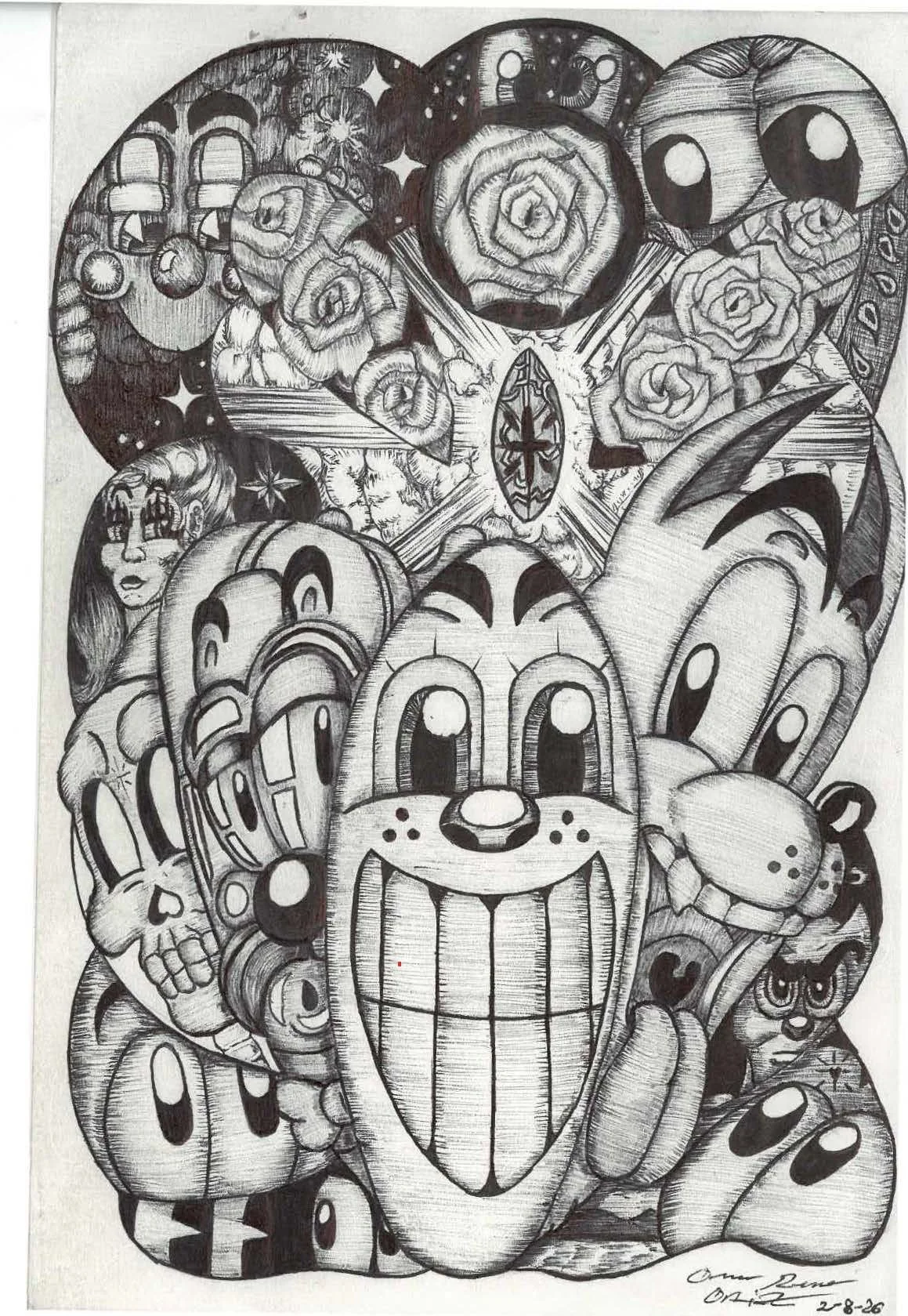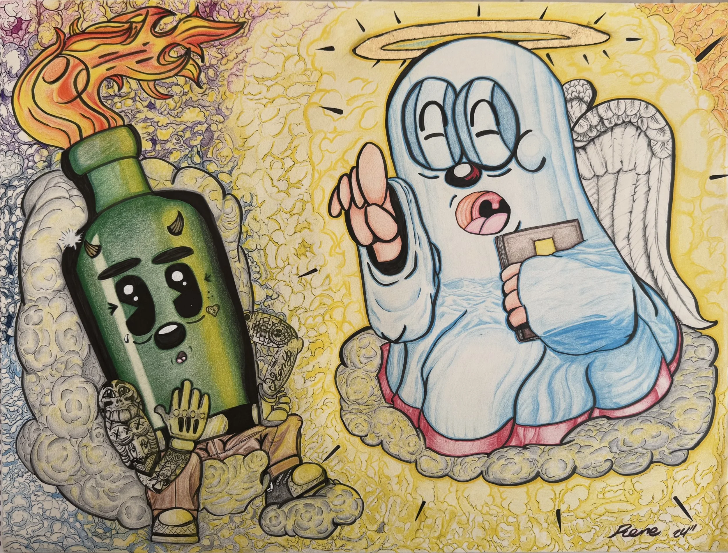 Born in Oxnard, California and shaped by a series of unfortunately fortunate events, Rene Cartoons was founded by Omar René Ortiz, a native of the Ridgeview neighborhood in Bakersfield. His work emerges from a vibrant intersection of memory and the streets: the textures of Bakersfield—its lights, its rhythms, its small victories and wounds—nourish an animated vision that rejects the superficial.